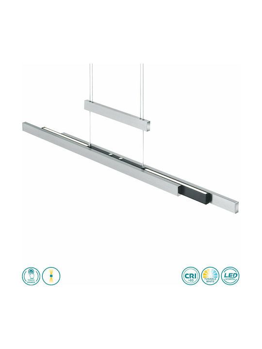 Φωτιστικό Κρεμαστό Ράγα L95xH150cm Led Smd 45w 5300lm 2700-5000K Βουρτσιστό Αλουμίνιο Trio Trajan 375310505