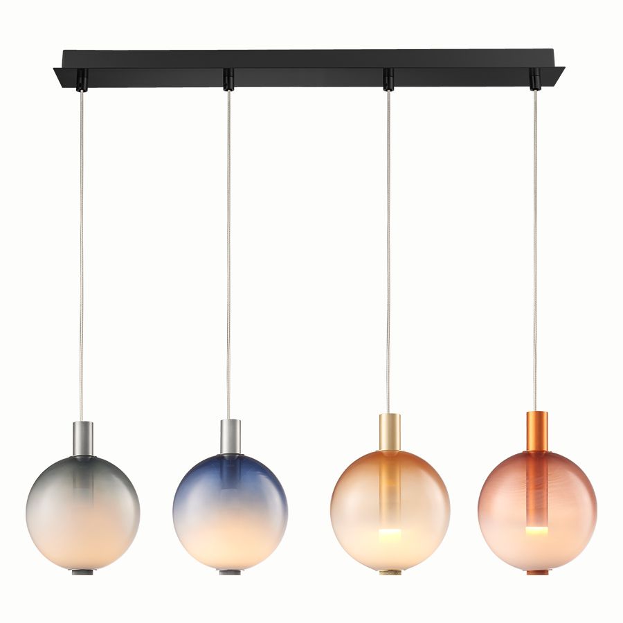 Φωτιστικό Κρεμαστό Τετράφωτη Ράγα Μαύρη L105xH180cm Led 16w 800lm 3000K Χειροποίητο Γυαλί Μελί-Γκρι-Μπλε-Ροζ Παλ Sun Light VENUS-4S