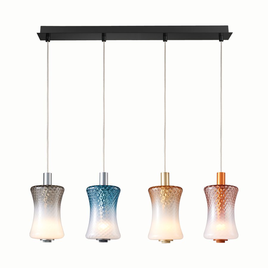 Φωτιστικό Κρεμαστό Τετράφωτη Ράγα Μαύρη L105xH180cm Led 16w 880lm 3000K Χειροποίητο Γυαλί Μελί-Μπλε-Γκρι-Ροζ Παλ Sun Light PAUL-4S
