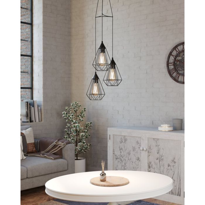 Φωτιστικό Κρεμαστό Τρίφωτο Ø31 εκ.Vintage Μέταλλο Μαύρο Eglo Tarbes 94191