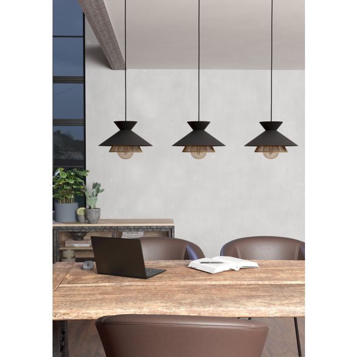 Φωτιστικό Κρεμαστό Τρίφωτο Ράγα 3L960xH1100mm Μέταλλο-Μαύρο-Ορείχαλκος Eglo Grizedale 43886