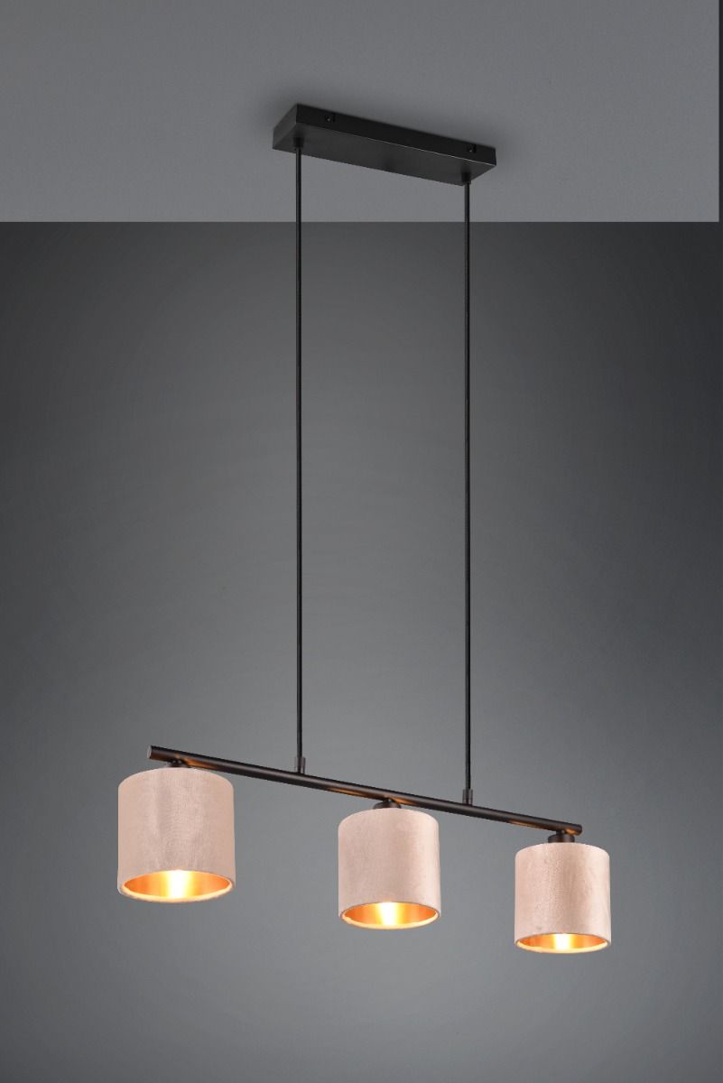 Φωτιστικό Κρεμαστό Τρίφωτο Ράγα L66x12xH150cm 3xE14 Μέταλλο Μαύρο Ματ- Αμπαζούρ Χρυσό εσωτερικά Trio Lighting Julieta 319000344