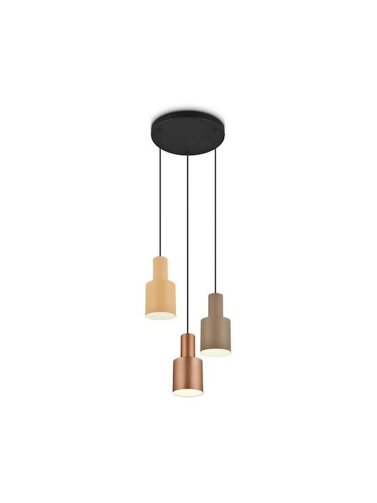 Φωτιστικό Κρεμαστό Τρίφωτο Ροζέτα Ø37xH150cm 3xE27 Μέταλλο Μαύρο Ματ- Αμπαζούρ Καφέ Trio Lighting Agudo 319430317