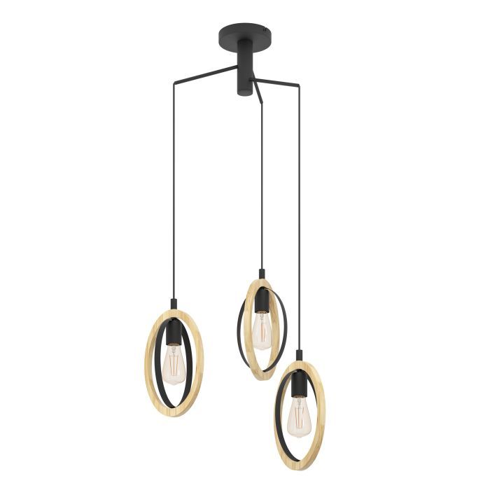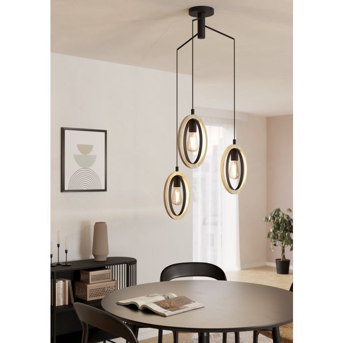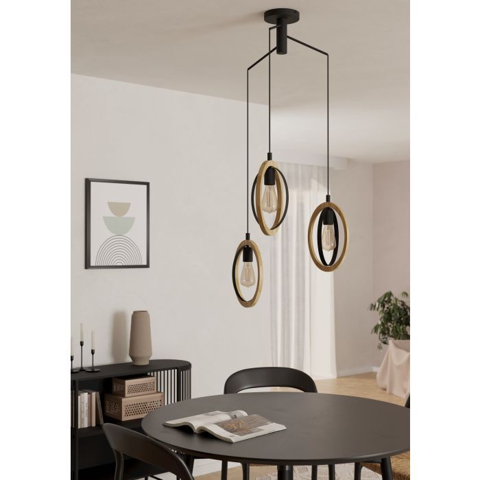 Φωτιστικό Κρεμαστό Τρίφωτο Ροζέτα Ø615xH1300mm 3xE27 Μέταλλο Μαύρο-Ξύλο Eglo Basildon 43463