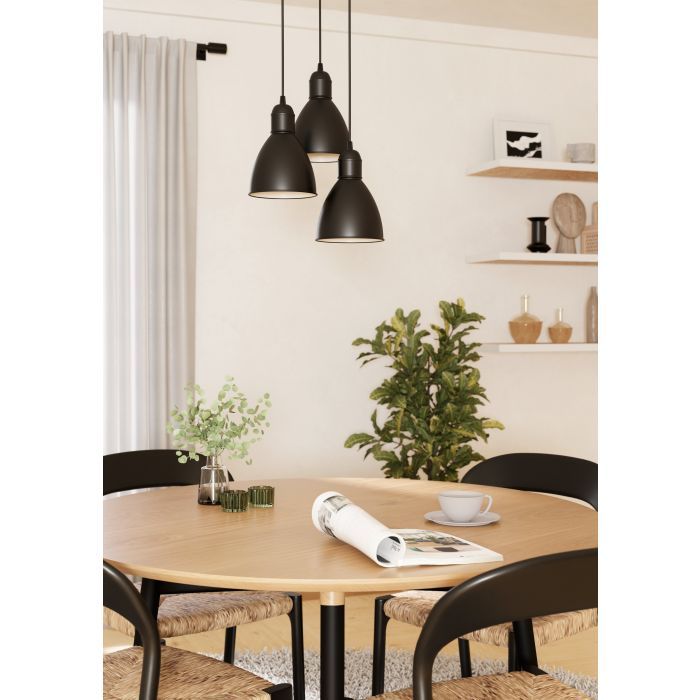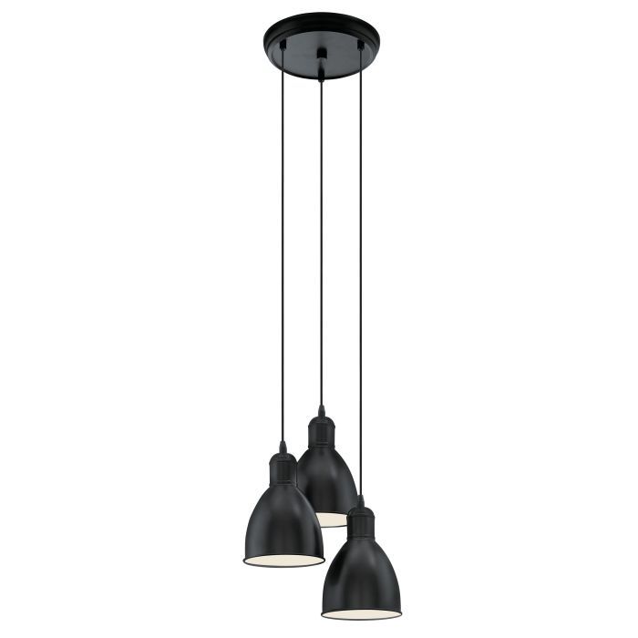 Φωτιστικό Κρεμαστό Τρίφωτο σε ροζέτα Ø32,5 εκ. Ατσάλι Μαύρο Εξωτερικά-Λευκό Εσωτερικά Eglo Priddy 49465