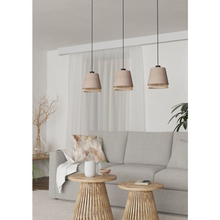 Φωτιστικό Κρεμαστό Τρίφωτο 3xE27 L890xH1100mm Μέταλλο-Ξύλο-Ύφασμα Eglo Tabley 43976