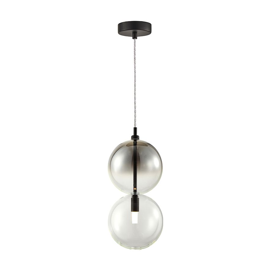 Μονόφωτο κρεμαστό φωτιστικό κατασκευασμένο από χειροποίητο γυαλί σε αποχρώσεις διάφανου και χρωμίου με μαύρα μεταλλικά στοιχεία.| Χρώμα | Διάφανο-Trasparent-Clear |