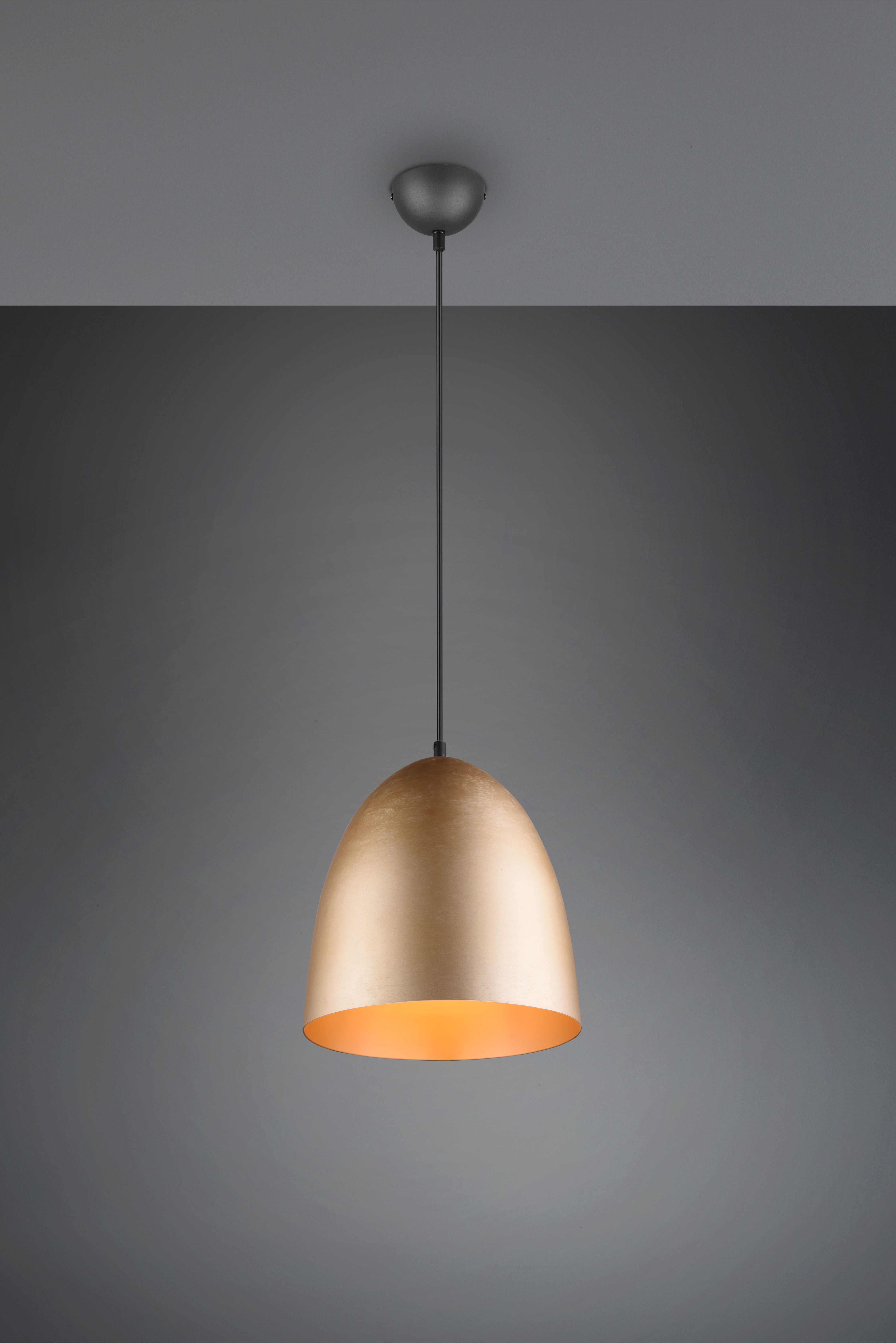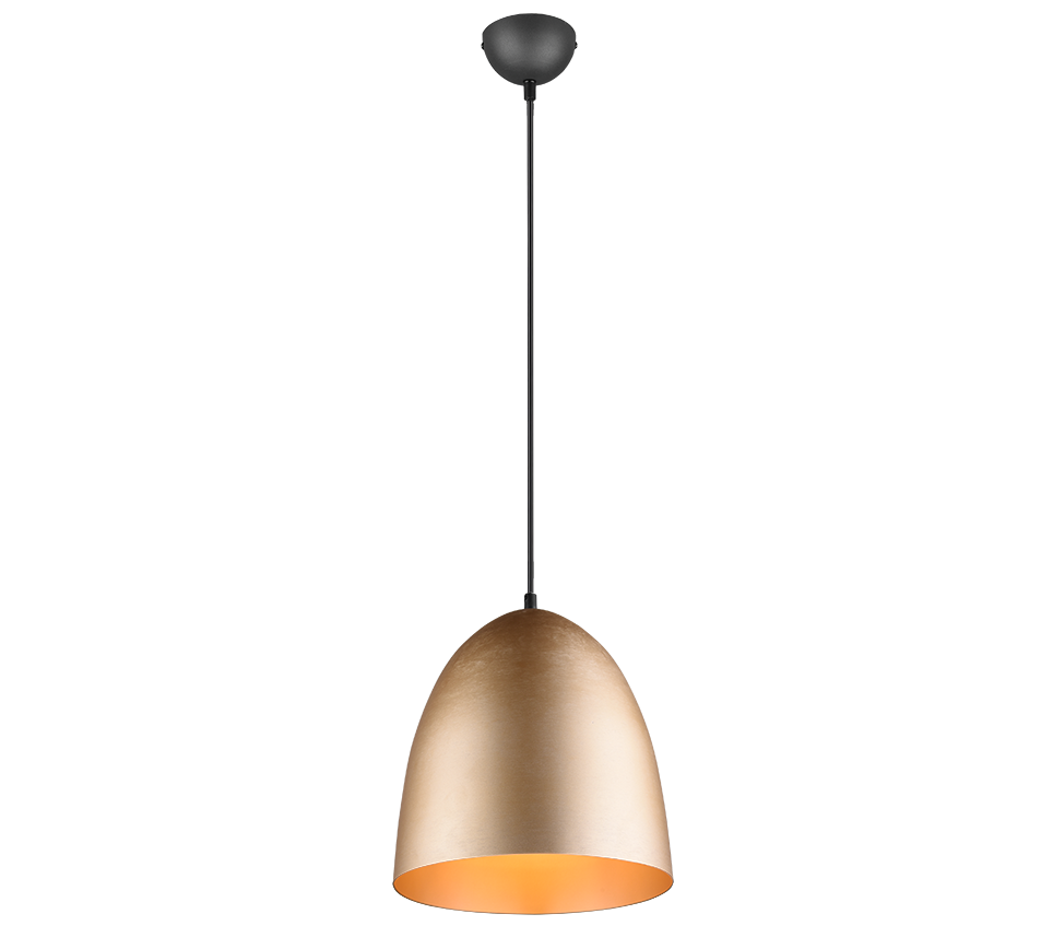 Μονόφωτο κρεμαστό φωτιστικό καμπάνα από την εταιρεία Trio Lighting σε χρυσό χρώμα, με υποδοχή για έναν λαμπτήρα και ντουί E27. Είναι κατασκευασμένο από μέταλλο, ένα υλικό δημοφιλή στα κρεμαστά φωτιστικά οροφής, καθώς πέρα από τη μοντέρνα νότα που προσφέρει, είναι ιδιαίτερα ανθεκτικό στον χρόνο. Καθαρίζεται εύκολα με ένα πανί.