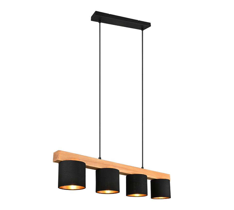 Φωτιστικό Κρεμαστό 75εκ. 4*Ε14 Μέταλλο Μαύρο Ματ-Ξύλο-Ύφασμα Μαύρο Trio Lighting RL Cameron R30654002