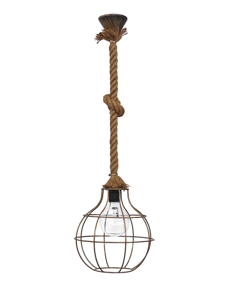 Φωτιστικό κρεμαστό με σχοινί και μεταλλικό πλέγμα FUN-50/25 ROPE UT-BR 1/L