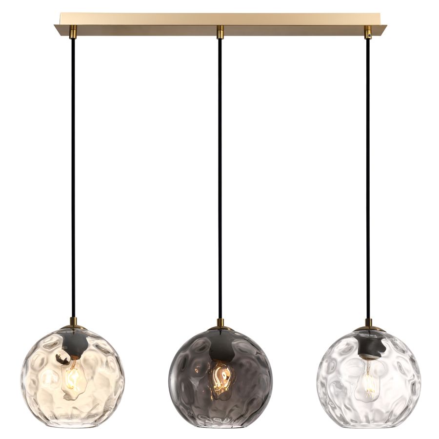 Πολύφωτο-κρεμαστό φωτιστικό κατασκευασμένο από χειροποίητα γυαλιά και μεταλλική βάση σε οξυντέ.Ύψος: 120 εκ.Μήκος: 65 εκ.Διάμετρος γυαλιού: 20 εκ.Λαμπτήρες: 3 τεμ.Τύπος Λαμπτήρα: Ε27Watt: 60| Χρώμα | Μπρονζέ-Οξυντέ-Bronze |