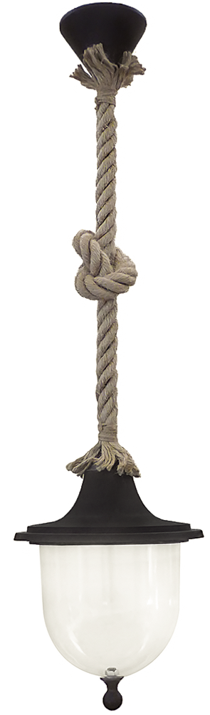 Φωτιστικό κρεμαστό εξωτερικού χώρου LP-810K ROPE UT-BLACK ,πλαστικό με γυαλί σε χρώμα μαύρο και φυσικό σχοινί με κόμπο