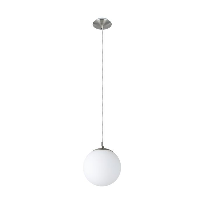 Φωτιστικό Μονόφωτο Ø200xH1100mm 1xE27 Μέταλλο Νίκελ Ματ -Γυαλί Οπαλίνα Eglo Rondo 85261