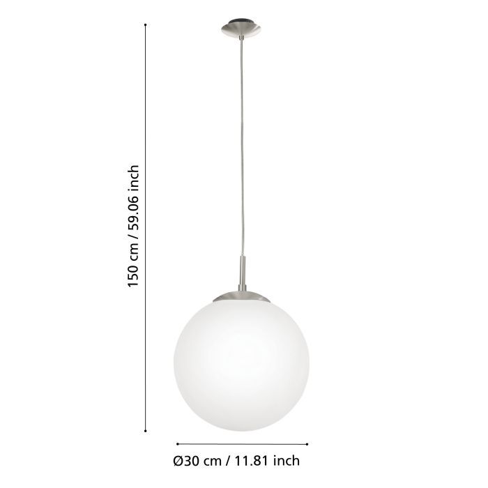 Φωτιστικό Μονόφωτο Ø300xH1100mm 1xE27 Μέταλλο Νίκελ Ματ -Γυαλί Οπαλίνα Eglo Rondo 85263