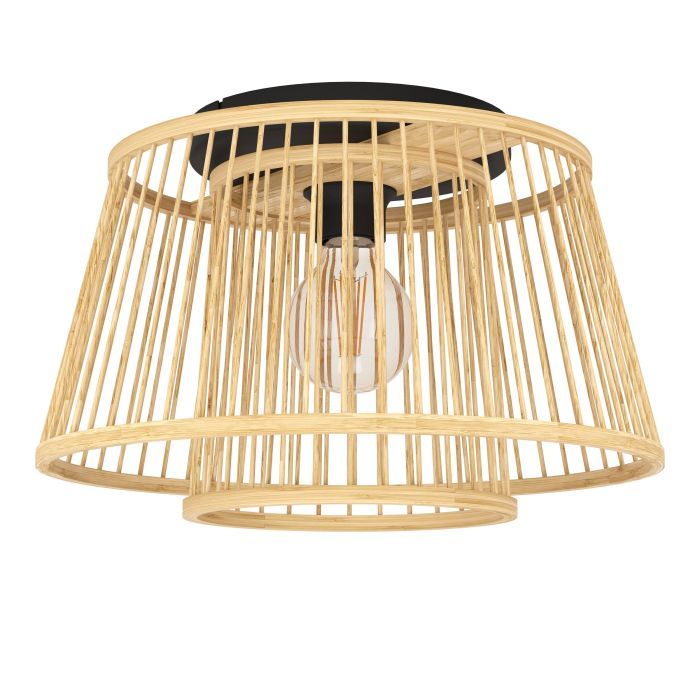 Φωτιστικό Οροφής Ø380xH210mm 1xE27 Μπαμπού-Μαύρο Eglo Hykeham 43851