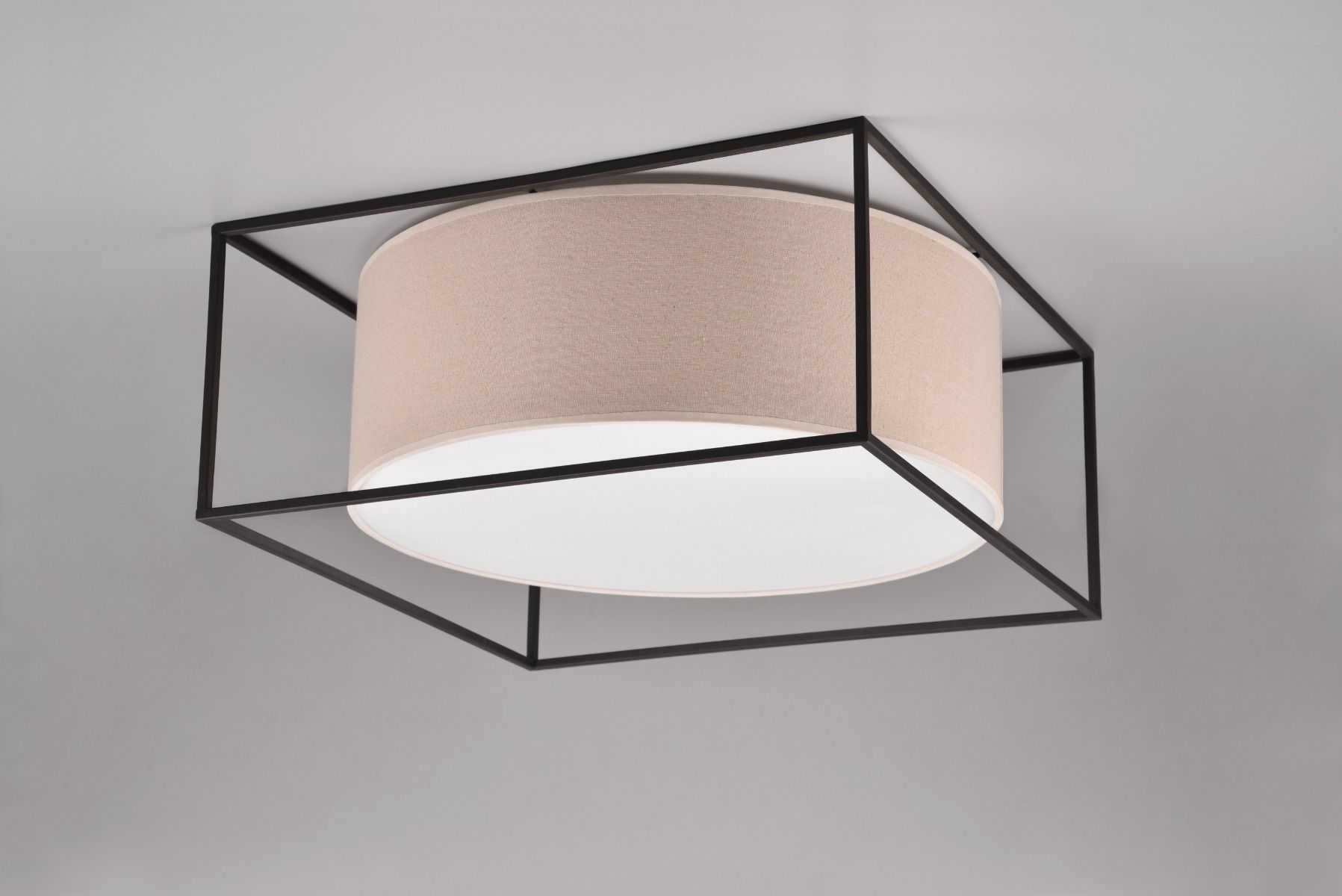 Φωτιστικό Οροφής Πλαφονιέρα Τρίφωτη L50x50xH22,5cm 3xE27 Μαύρο Ματ-Υφασμάτινο Αμπαζούρ Lighting Ross 603100344