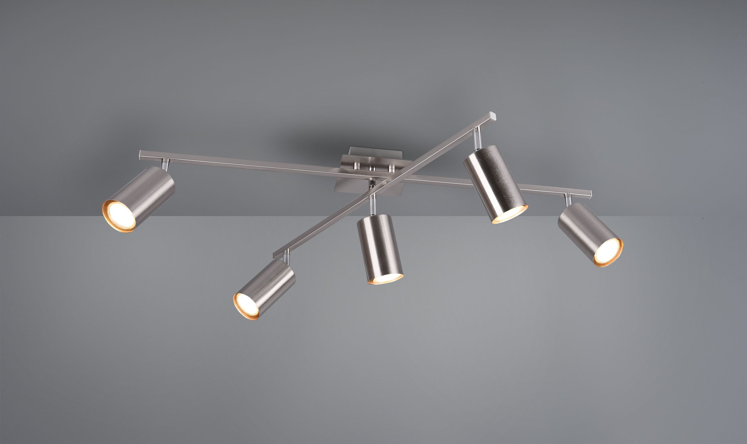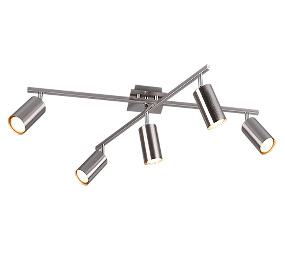The arms and spotlights of the 5-bulb ceiling light are freely movable and can be individually aligned as required.
