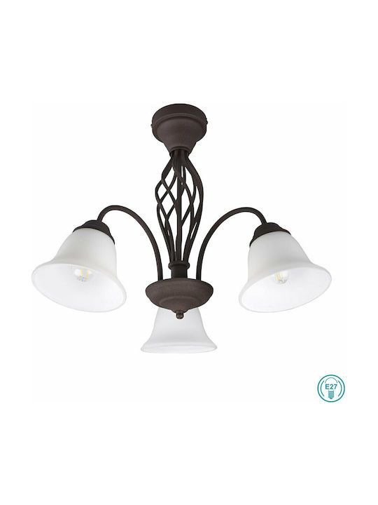 Φωτιστικό Οροφής Τρίφωτο 3xE14 Ø55xH42,5εκ. Μέταλλο Καφέ Σκουριάς-Γυαλί Λευκό Ματ Trio Lighting Rustica 601000324