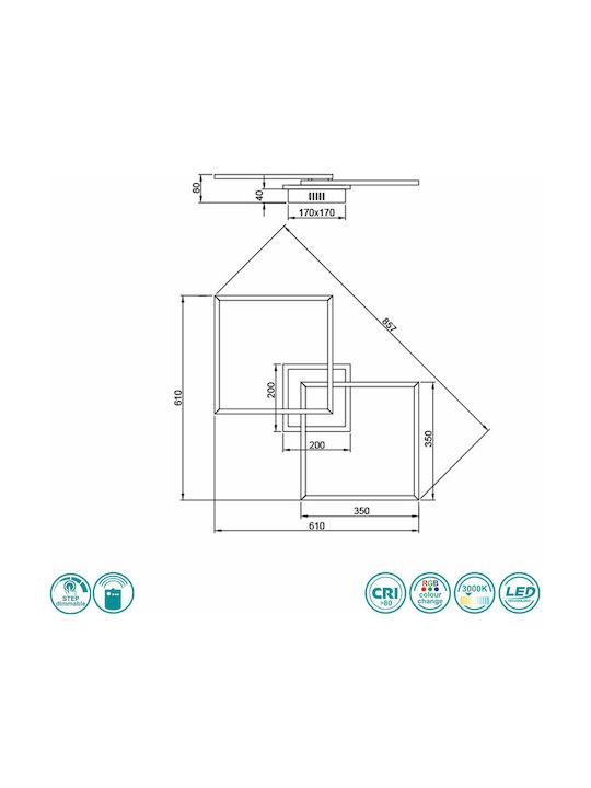 Φωτιστικό Οροφής L61x61xH8cm SMD Led 3000K 29w 3250lm+6,5w 600lm Μέταλλο Black Matt Trio Lighting RL Arribo R62843132