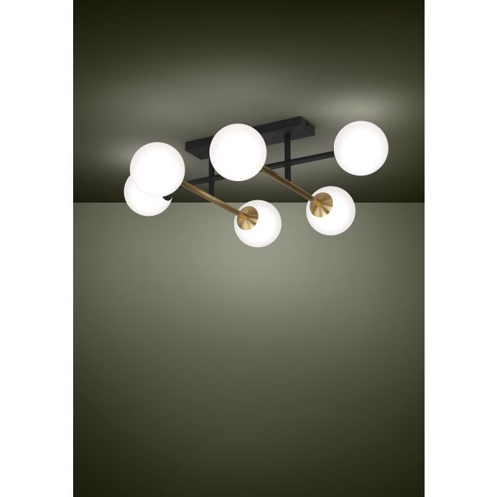 Φωτιστικό Πλαφονιέρα Οροφής 77,5cm 6xE14 Μέταλλο Μαύρο-Μπρονζέ-Οπάλ Γυαλί Eglo Paz 390176
