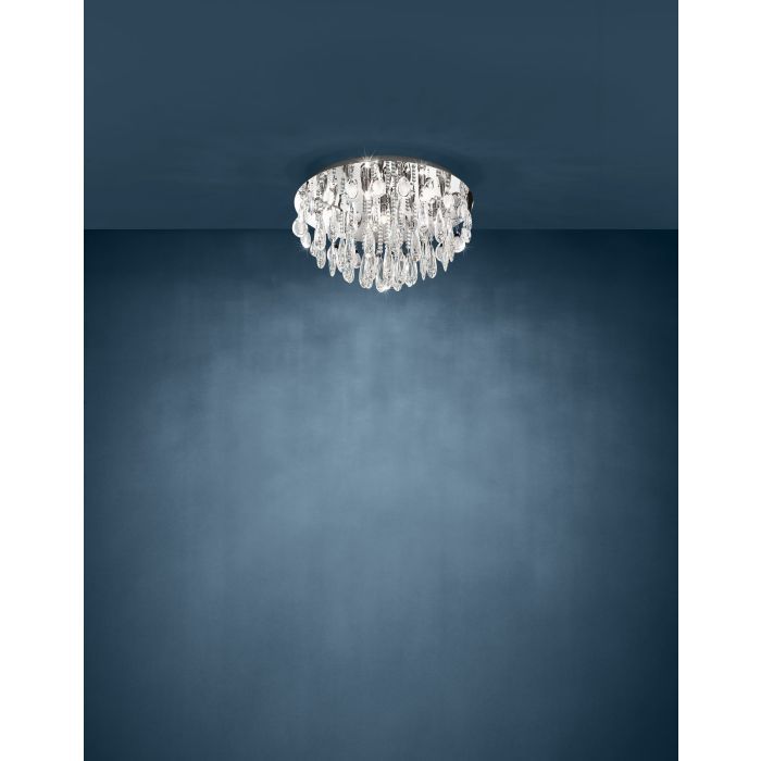Φωτιστικό Πλαφόν Οροφής Ø580xH310mm G9 Led 7x33w 7x 450lm Warm White Χρωμέ-Διάφανα Κρύσταλλα Eglo Calaonda 93413