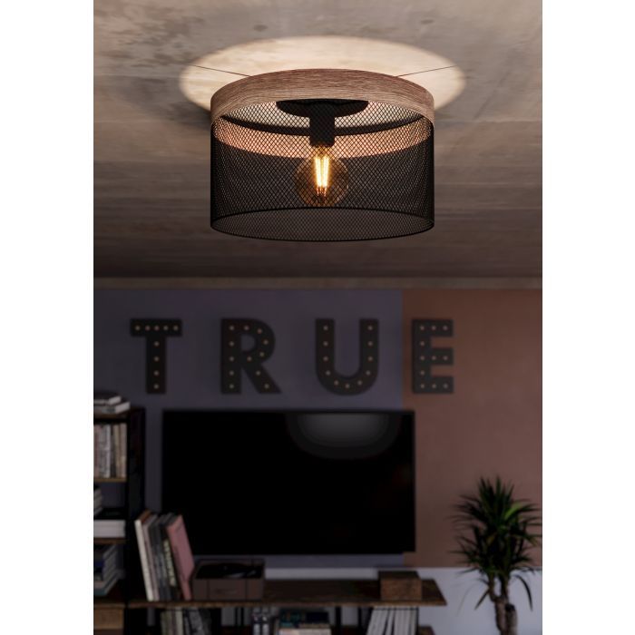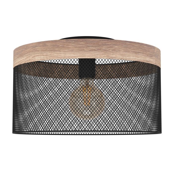 Φωτιστικό Πλαφόν Οροφής Μονόφωτο Ø380xH240 mm 1xE27 Ξύλο-Μαύρο Ατσάλι Eglo Kilnsdale 43832