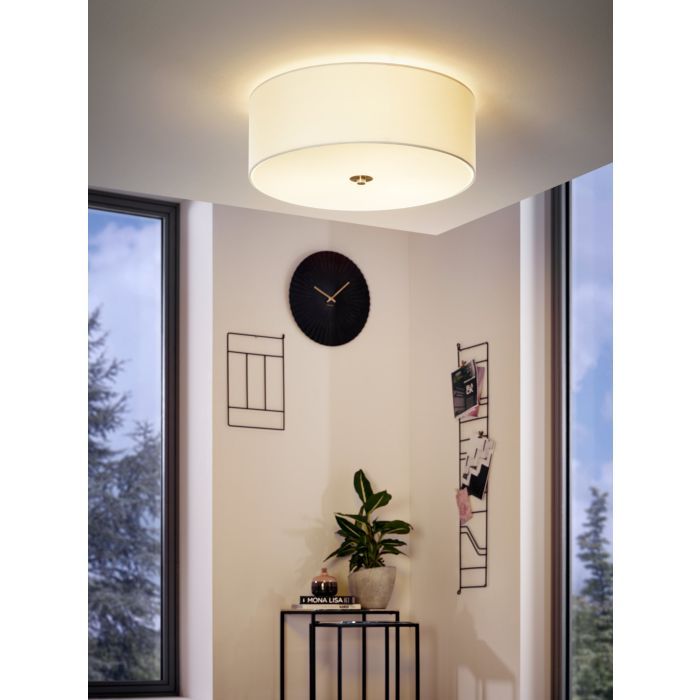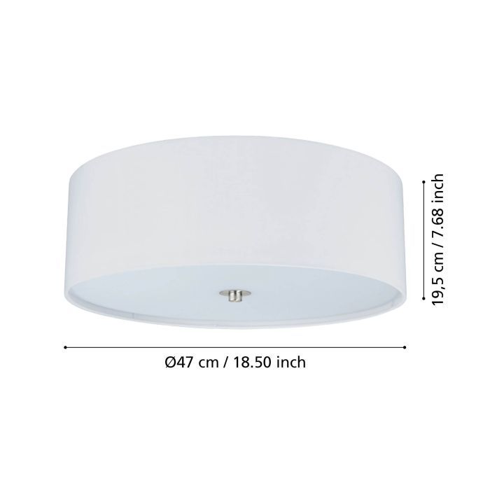 Φωτιστικό Πλαφόν Οροφής 3xE27 Ø475xH195mm Νίκελ Ματ-Λευκό Ύφασμα-Γυαλί Eglο Pasteri 94918