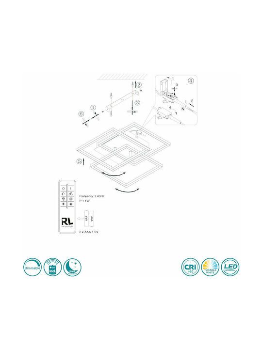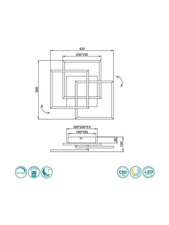Φωτιστικό Πλαφόν Οροφής 42x39xH10cm Led 27w 1x3200lm 2700-6000K Nickel Mat Trio RL Mobile R62883107