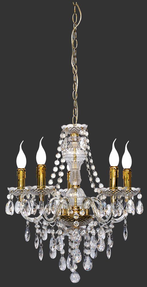 Περιγραφή: Πολυέλαιος Πεντάφωτος Διάφανος με λεπτομέρειες Μπρονζέ