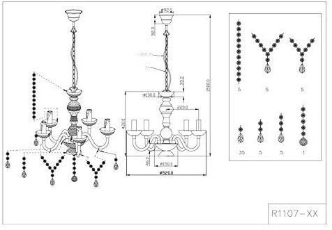 Φωτιστικό Πολυέλαιος Πεντάφωτος Ø52 εκ. Διάφανο Ακρυλικό /Λεπτομέρειες Μπρονζέ Trio Luster R1107-03.