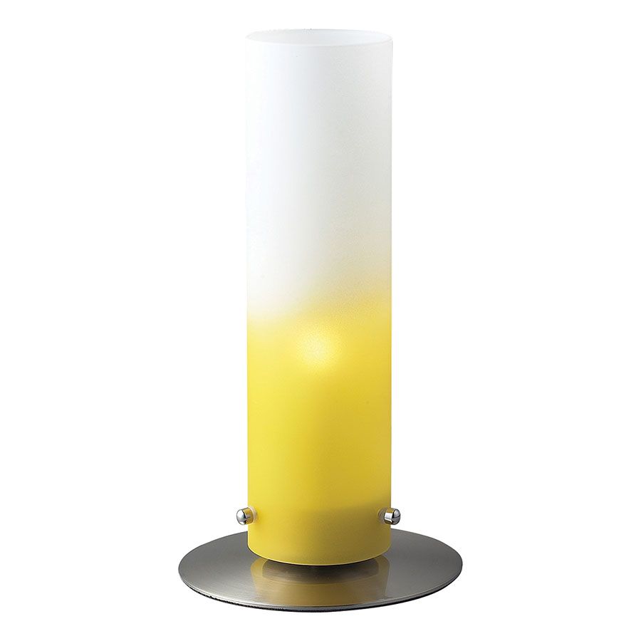 Επιτραπέζιο φωτιστικό (μονόφωτο πορτατίφ) με μεταλλική βάση σε νίκελ ματ και γυαλί κίτρινο και λευκό χρώμα.Ύψος: 20,5 εκ.Διάμετρος: 11 εκ.Λαμπτήρες: 1 τεμ.Τύπος Λαμπτήρα: G9Watt: 40| Χρώμα | Κίτρινο-Yellow |