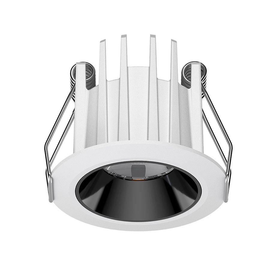 Φωτιστικό σποτ χωνευτό σε άσπρο χρώμα με μαύρο ανακλαστήρα.