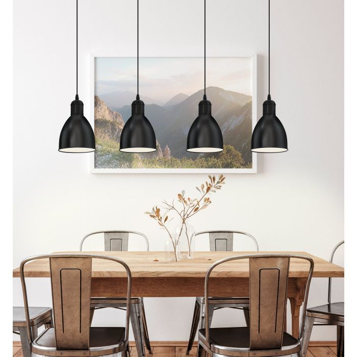 Φωτιστικό Τετράφωτο Vintage Ράγα 97,5 εκ. Ατσάλι Μαύρο Εξωτερικά Λευκό Εσωτερικά Eglo Priddy 49466