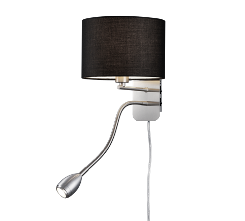 Φωτιστικό Τοίχου 20xH23cm Υφασμάτινο Μαύρο Αμπαζούρ & Σποτ Διαβάσματος Εύκαμπτος Βραχίονας Νίκελ Ματ Trio Lighting Hotel 271170202