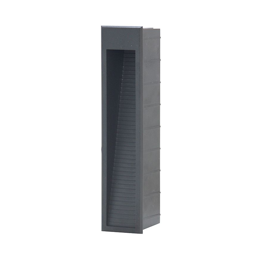 Χωνευτό φωτιστικό εξωτερικού χώρου από αλουμίνιο και PC σε μαύρο χρώμα.Ύψος: 22 εκ.Πλάτος: 5 εκ.Βάθος: 5,2 εκ.Άνοιγμα: 4,3*2,1 εκ.Τύπος Λαμπτήρα: LED Max 3W/3000kLUMEN: 70lΣτεγανότητα: IP65