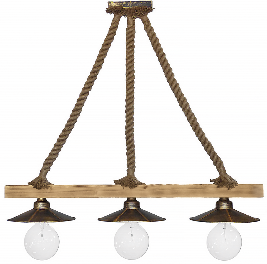 Κρεμαστό φωτιστικό 3/φωτο με ξύλινη ράγα και σχοινιά UT-150 ROPE 3/L RAGA