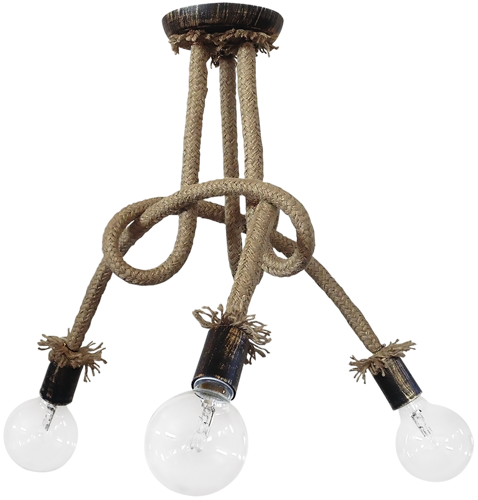 Φωτιστικό οροφής μπρονζέ PLEX 3/L ROPE Τεχνικά χαρακτηριστικά Μεταλλικό με σχοινί Χρώμα Μπρονζέ/σχοινί Η50cm x Φ50cm 3 x E/27