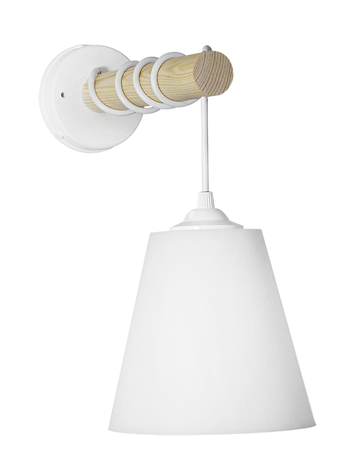 Φωτιστικό τοίχου / απλίκα ξύλινη με καλώδιο λευκό & καπέλο λευκό πλαστικό
