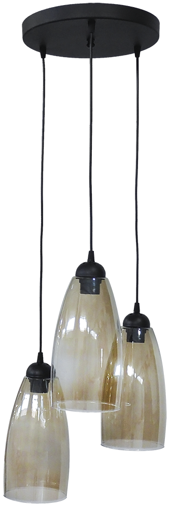 Φωτιστικό ανισόπεδο 3φωτο μαύρο GL-5050 PENDEL 3L BL-FUME Τεχνικά χαρακτηριστικά βάση μεταλλική / γυαλί H96 x Φ33cm 3 x Ε/27 Χρώμα φιμέ E/27 LED
