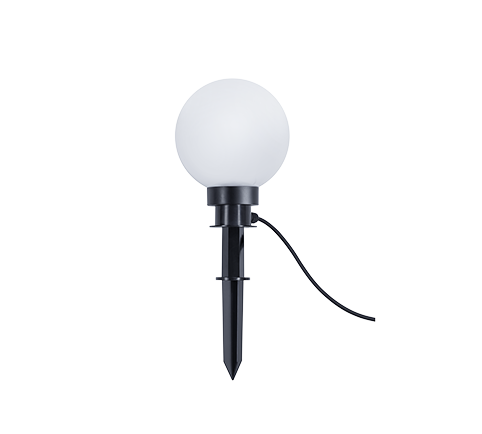 Inviting and effective - outdoor lights set atmospheric lighting accents around the house. The decorative BOLO garden ground light has a five metre supply cable and is supplied with a ground spike so that you can easily fix it in your garden. The globe light has a diameter of 20 cm and is extremely weather-resistant thanks to its IP44 rating. The light conjures up a harmonious atmosphere in your outdoor area or brings it safely to the house or garage as a path light. The BOLO garden light comes with a white plastic globe and a black ground spike. For energy-saving lighting, it is recommended to use an LED illuminant. These are an optimal alternative to conventional halogen lamps and stand for a high quality of light and energy savings of up to 80%. In addition, LED lamps help you benefit from a long service life, low heat generation and at the same time protect the environment.