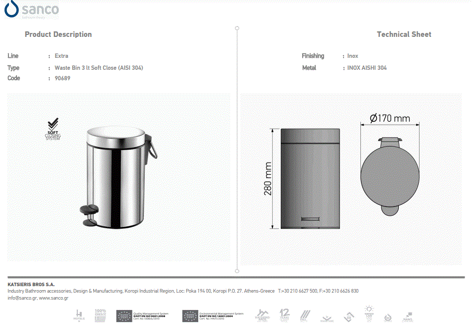 Χαρτοδοχείο 3lt Soft Closιng System Brushed Brass Sanco Waste Bins 90689-AB12 Χαρτοδοχείο 3lt Soft Closιng System Brushed Brass Sanco Waste Bins 90689-AB12 Χαρτοδοχείο 3lt Soft Closιng System Brushed Brass Sanco Waste Bins 90689-AB12