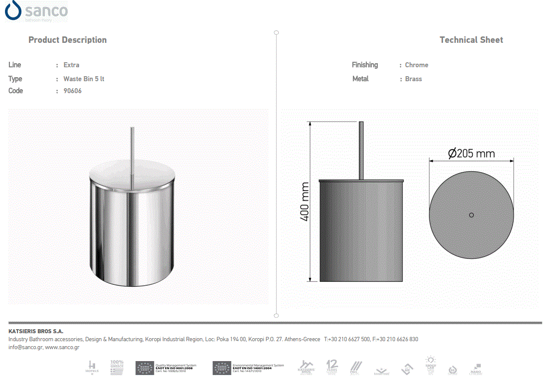 Περιγραφή: Χαρτοδοχείο Χρωμέ 5 λίτρων Επιδαπέδιο