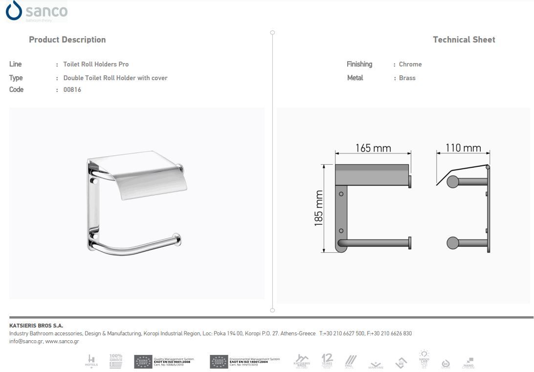 Χαρτοθήκη Χρωμέ Διπλή με καπάκι Sanco Toilet Roll Holders Pro 0816-A03Ειδική Τιμή 81,00 € Κανονική τιμή 90,00 €