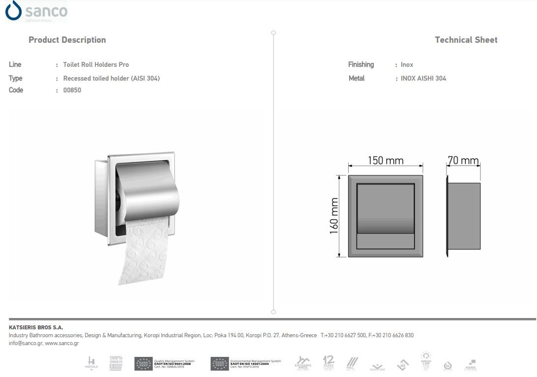Χαρτοθήκη Εντοιχιζόμενη με Καπάκι W15xD7xH16 cm Inox Aisi 304 Dark Bronze Mat Sanco Toilet Roll Holders Pro 0850-DM25 Χαρτοθήκη Εντοιχιζόμενη με Καπάκι W15xD7xH16 cm Inox Aisi 304 Dark Bronze Mat Sanco Toilet Roll Holders Pro 0850-DM25