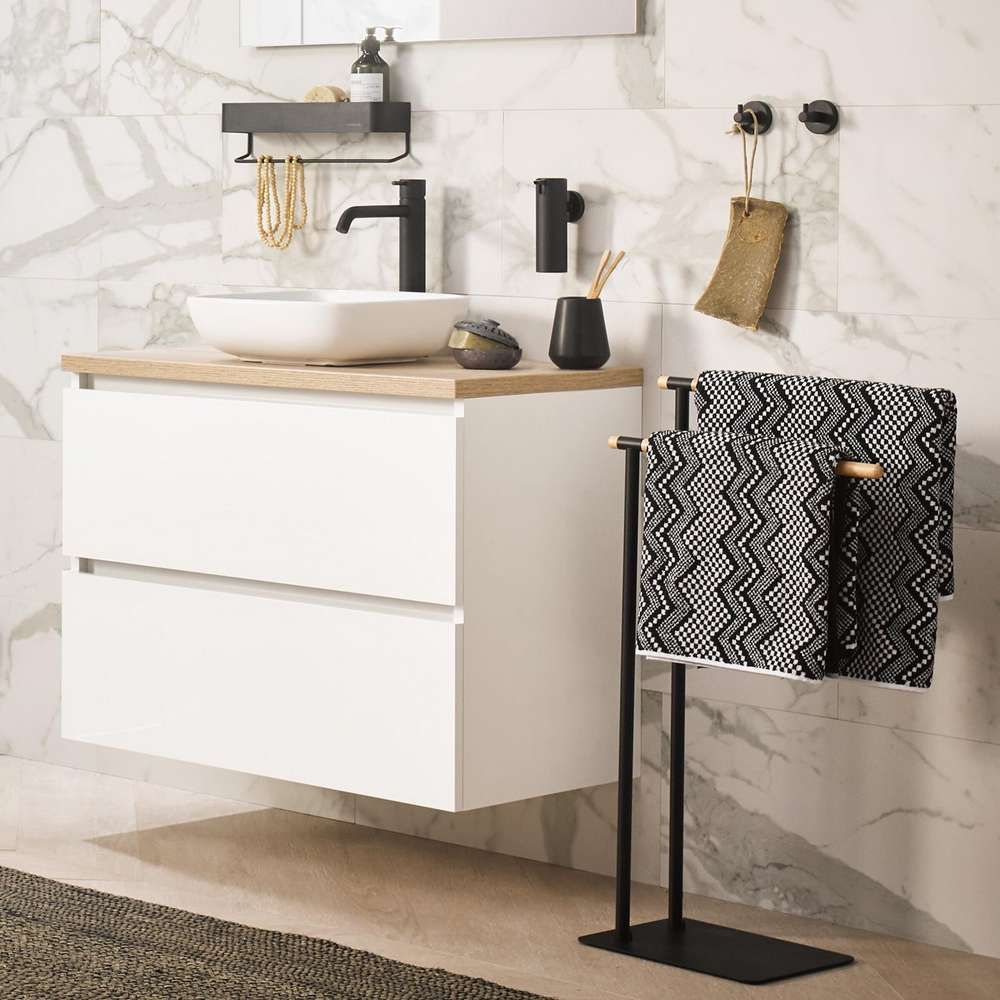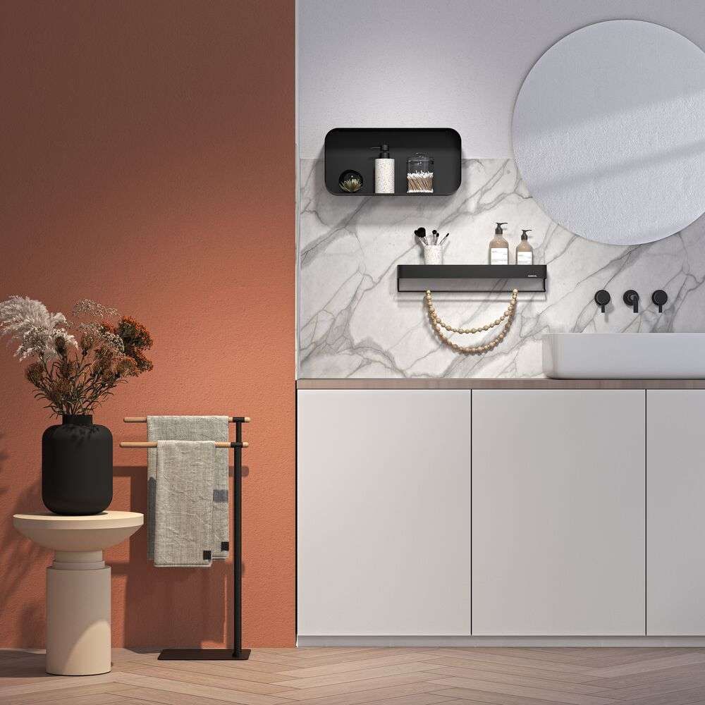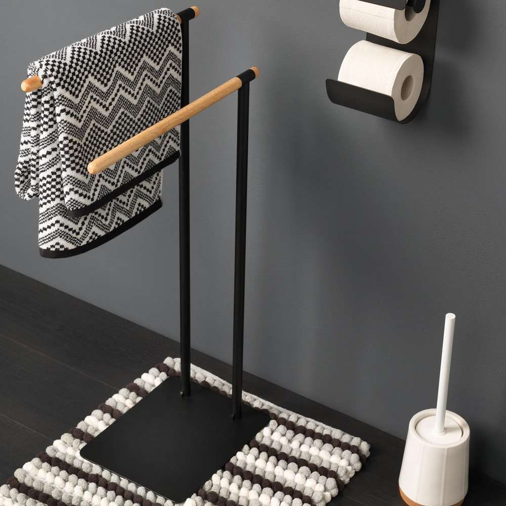 Είτε θέλετε να τοποθετήσετε μία, δύο ή τρεις πετσέτες, η βάση για πετσέτες Brix της Sealskin προσφέρει άφθονο χώρο! Η ανεξάρτητη βάση μπορεί να τοποθετηθεί εύκολα σε διάφορα σημεία του μπάνιου σας. Κοιτάξτε τις γραμμές του, σκανδιναβικός σχεδιασμός στα καλύτερά του. Το μαύρο χρώμα συμπληρώνει το γήινο χρώμα του ξύλου, κάνοντας τους τόνους του ξύλου να ξεχωρίζουν όμορφα.