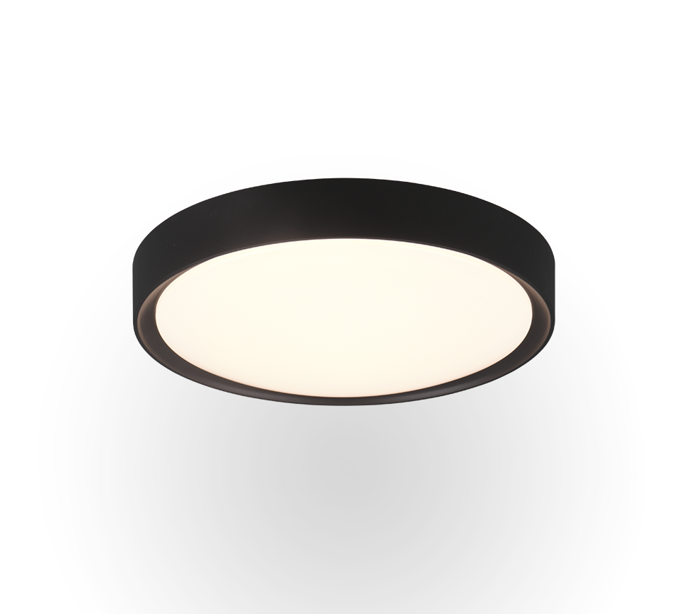 Μοντέρνα πλαφονιέρα οροφής της Trio Lighting σε μαύρο χρώμα, από πλαστικό. Διαθέτει ενσωματωμένο LED, το οποίο εκπέμπει θερμό λευκό φως που αποδίδεται στην κλίμακα Kelvin με τιμές από 2400Κ έως 3800Κ. Αυτοί οι τόνοι του λευκού είναι πιο κίτρινοι σε σχέση με το φυσικό φως.
