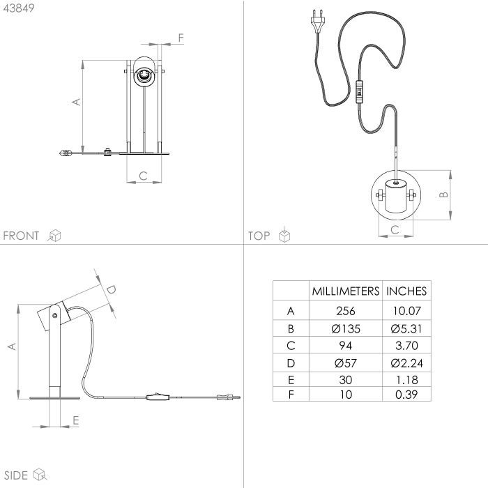 Eglo Επιτραπέζιο Διακοσμητικό Φωτιστικό με Ντουί για Λαμπτήρα E27 σε Μαύρο Χρώμα 43849