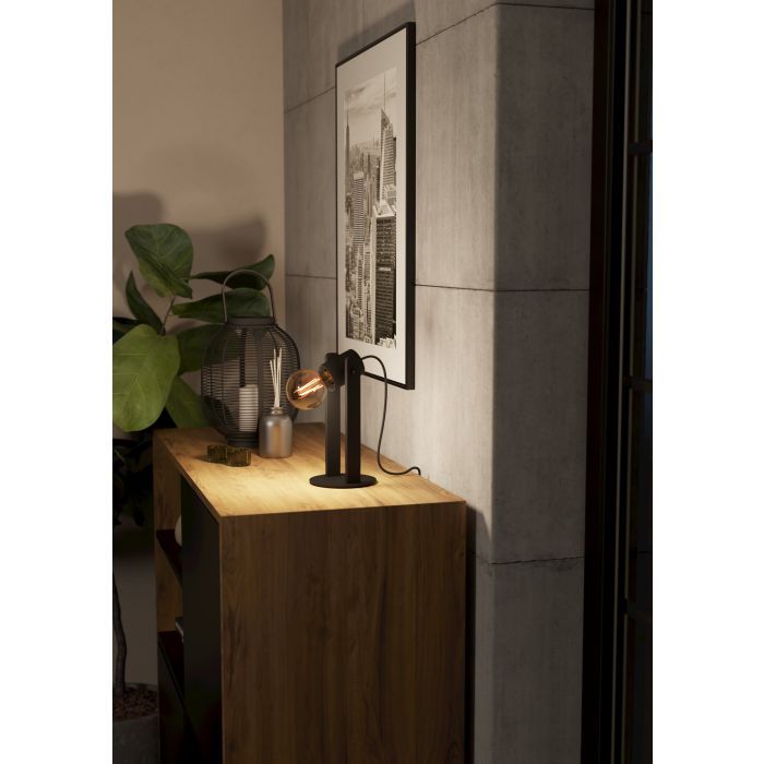 Επιτραπέζιο διακοσμητικό φωτιστικό της Eglo, σε μαύρο χρώμα. Διαθέτει ανταλλάξιμο λαμπτήρα συμβατό με ντουί E27.