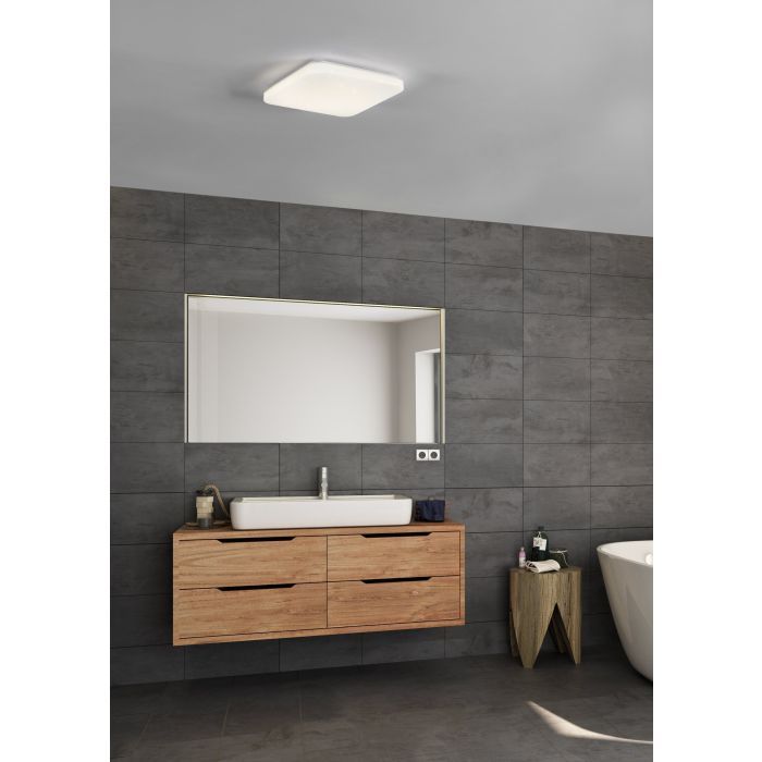 LED panel εξωτερικής τοποθέτησης της Eglo, τετράγωνο, με ισχύ 14.6W. Εκπέμπει φυσικό λευκό φως, το οποίο αποδίδεται στην κλίμακα Kelvin με τιμές από 4000Κ έως 4800Κ. Οι τόνοι του φυσικού λευκού ομοιάζουν με το φως της ημέρας και δεν περιέχουν άλλες αποχρώσεις.