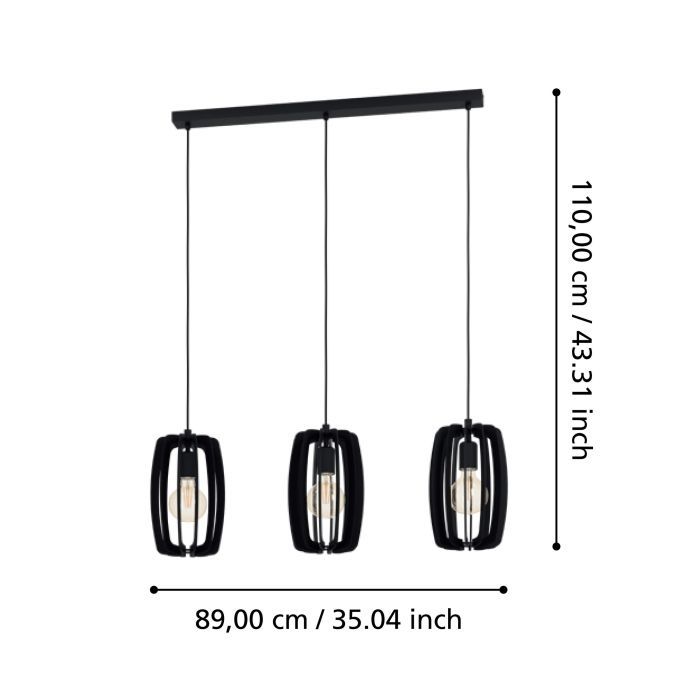 Τρίφωτο κρεμαστό φωτιστικό ράγα από την εταιρεία Eglo σε μαύρο χρώμα, με υποδοχές για 3 λαμπτήρες και ντουί E27. Είναι κατασκευασμένο από μέταλλο, ένα υλικό δημοφιλή στα κρεμαστά φωτιστικά οροφής, καθώς πέρα από τη μοντέρνα νότα που προσφέρει, είναι ιδιαίτερα ανθεκτικό στον χρόνο. Καθαρίζεται εύκολα με ένα πανί.
